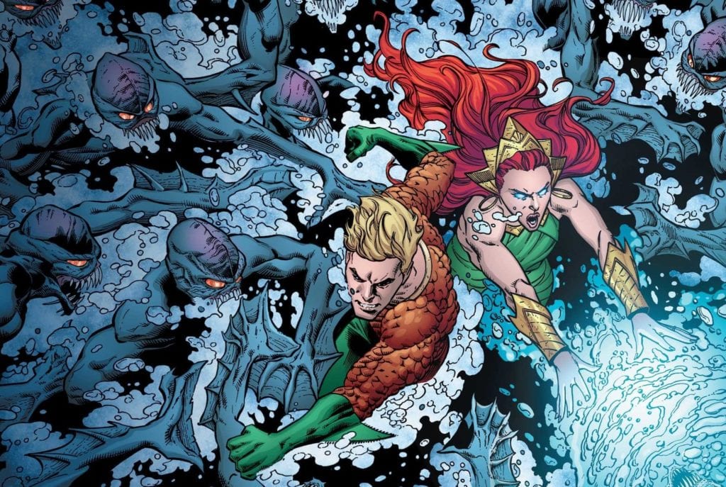 On Wednesday, January 15th, AQUAMAN #56 hits comic book stores with a new creative team and a new direction. Kyle Higgins has taken up the reigns of the written narrative, drawing from Arthur Curry and Mera’s recently rekindled romance to steer this ship toward different challenges. The two Atlanteans now know their love can survive the toughest challenges, and they’re ready to take on the world.