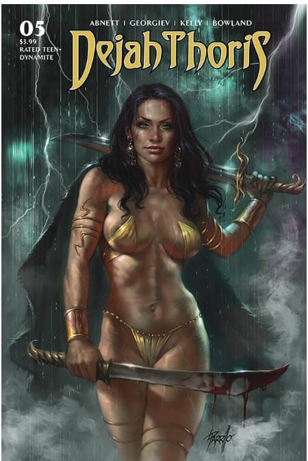 DEJAH THORIS VOL. 3, #5, available from Dynamite on June 10th, confronts Dejah and her crew with giant cave spiders and crawling brain bugs on her hunt to find Kurz Kurtos. Written by Dan Abnett and drawn by Vasco Georgiev, this issue boasts plenty of action, strong art, and a solid introduction to a new character.