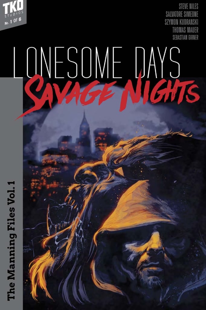 Merging genres is commonplace in Comics, and some groupings are better suited than others. This is abundantly clear in TKO Studios’ Lonesome Days Savage Nights written by master of horror Steve Niles and, co-founder of TKO Studios, Salvatore Simeone. The new hard-boiled horror comic crawls through the filthy streets, meting out its own form of justice in a thinly veiled metaphor for Intermittent Explosive Disorder.