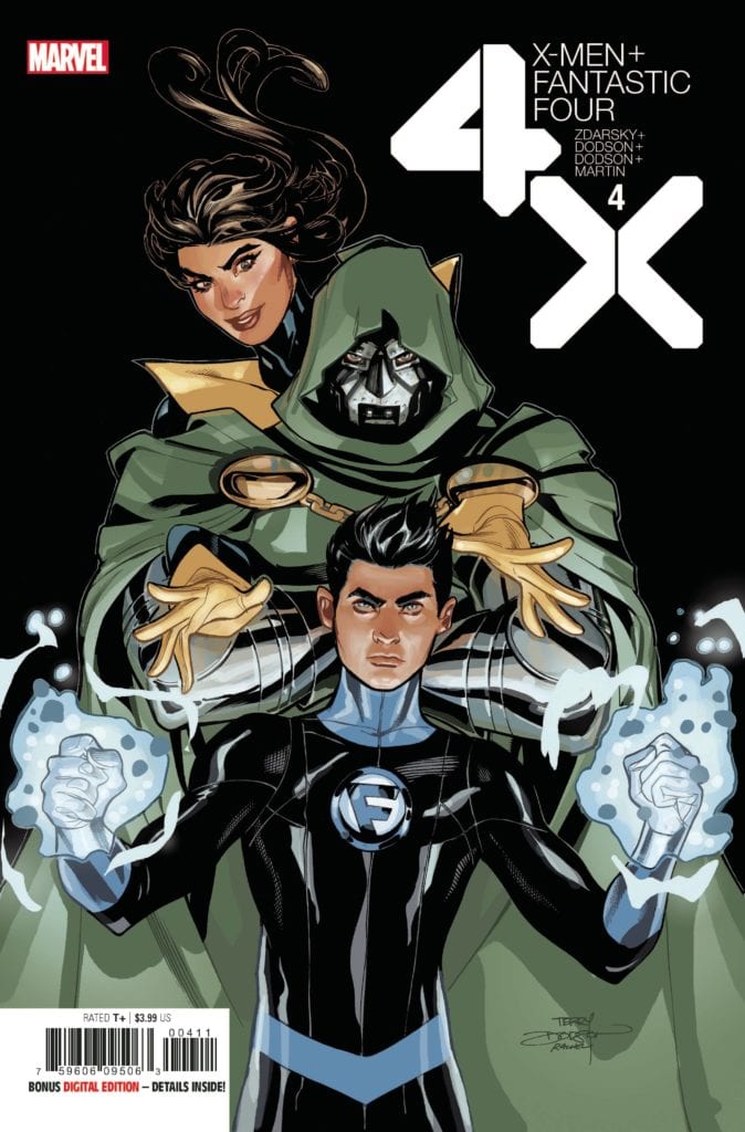 After COVID-related delays, Marvel Comics was finally able to release X-Men/Fantastic Four #4 on July 22. Following up on a lingering thread from House of X #1, the series addressed the place of Franklin Richards in the new Krakoan society. Writer Chip Zdarsky, penciler Terry Dodson, Inkers Rachel Dodson, and Ranson Getty, color artist Laura Martin, and letterer VC’s Joe Caramagna bring the miniseries to a satisfying if unnerving, conclusion.