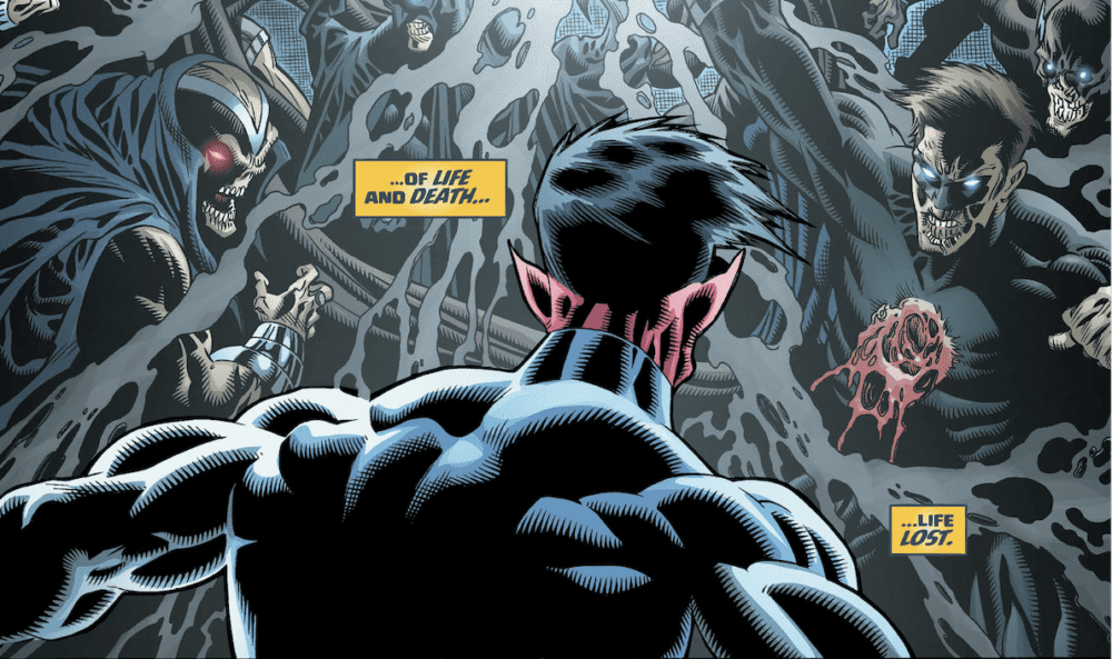 Starting from the climax of Blackest Night, we instantly see where things have gone wrong. Where in our universe Sinestro shared the power of the White Lantern to overpower Nekron, he doesn’t in this universe. Without that necessary back up, the death god killed the white entity, allowing the Black Lanterns to overtake the universe.
